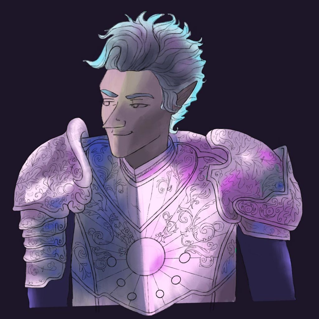 aaand another armour study, this time Astarion! Second pic is the underpainting, which I smudge then paint over on a layer above it.